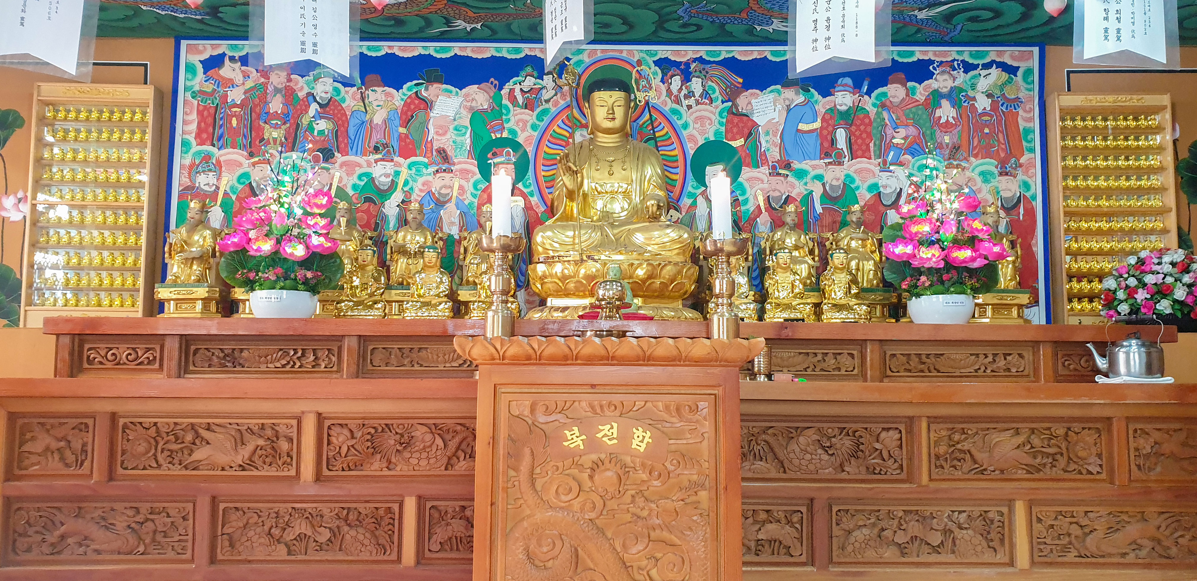 명부전 소원사의 명부전입니다. 소원사 명부전은 1994년 착공, 2020년도 준공하였습니다. 아미타부처님을 주불로, 좌우 십대왕께서 좌정하고 있습니다.이곳에서는 수많은 영가님들의 왕생극락을 돕고자 사십구재,천도재 제사, 지장 기도 및 영가 천도등을 빌어주는 곳입니다. 매월 18일(음) 지장 법회를 합니다.
